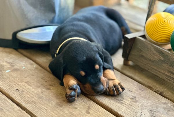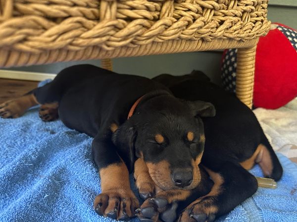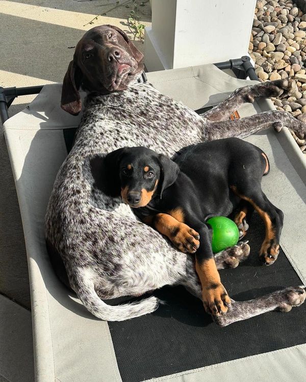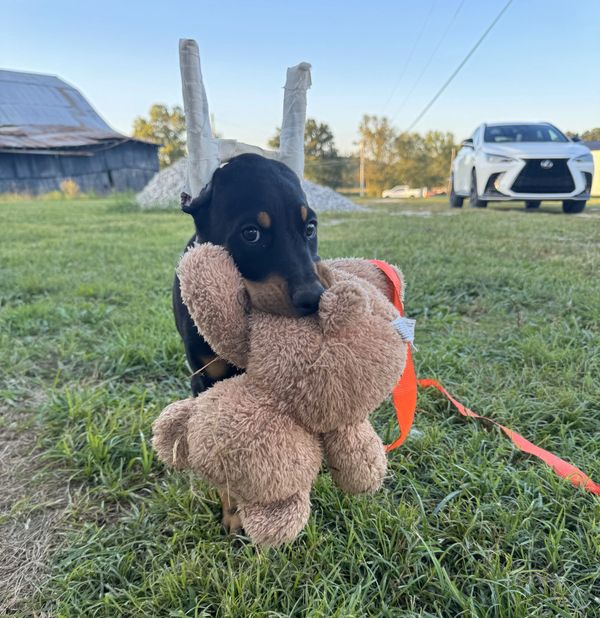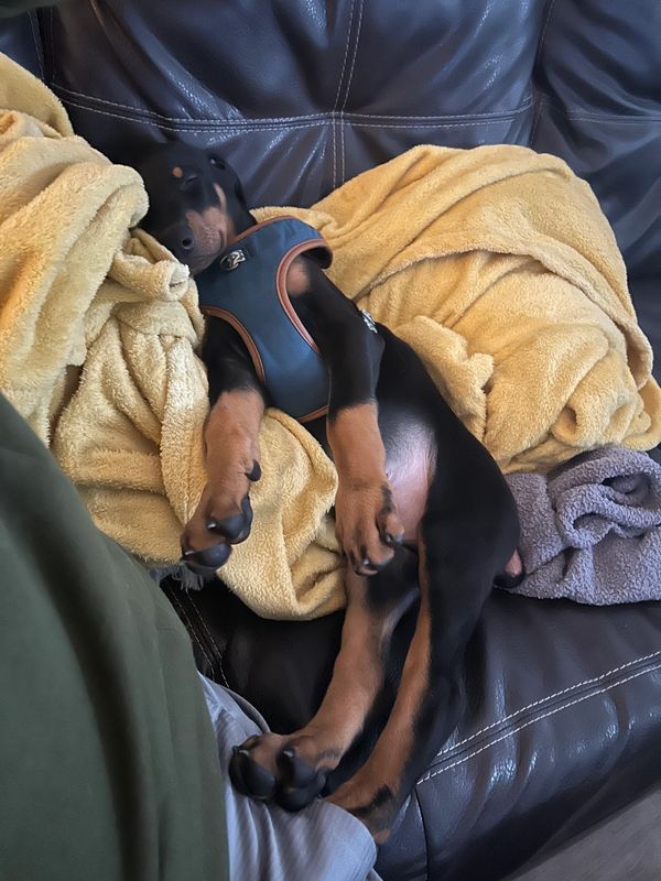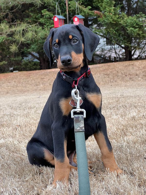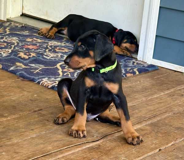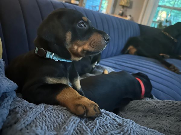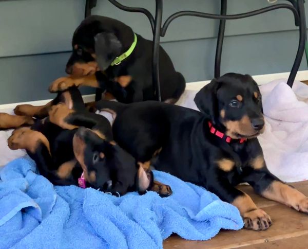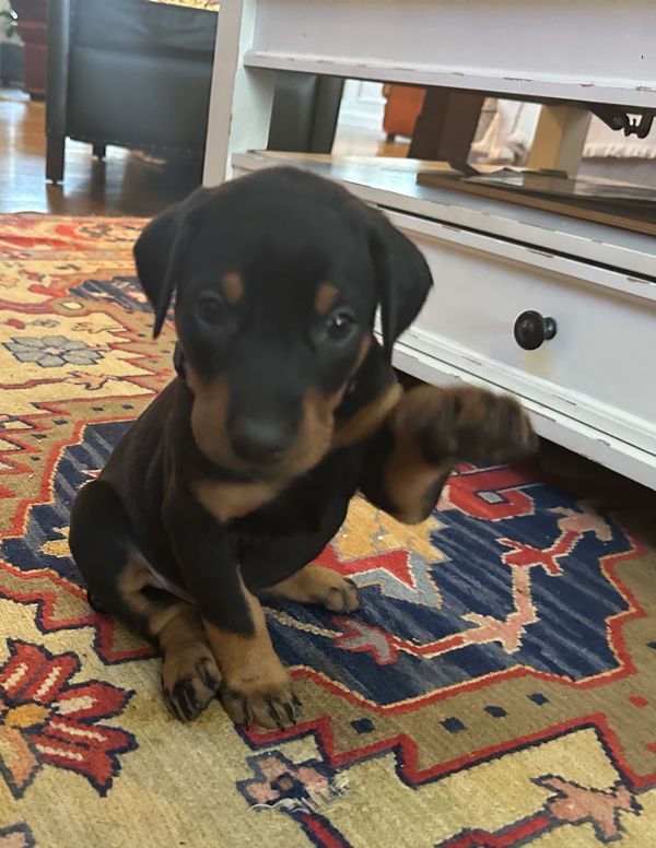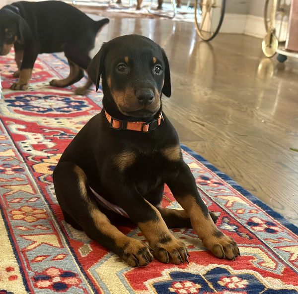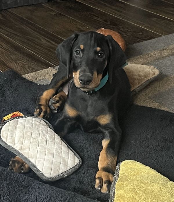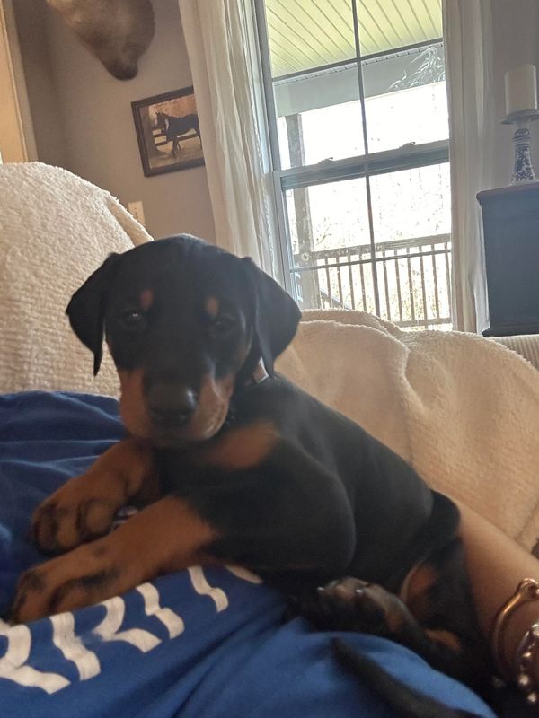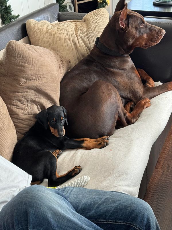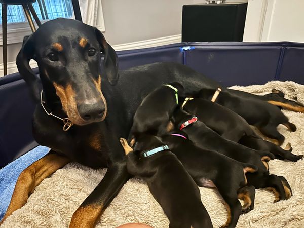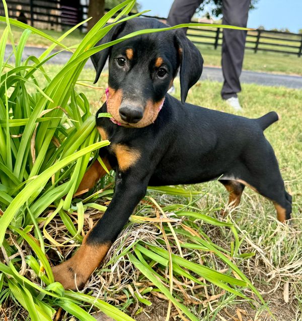 Raised in Lexington, KY, as an equestrian and equine enthusiast, I encountered my first Doberman Pinscher at a local polo match. That moment sparked my love for the breed. We are a family that started breeding our purebred champion bloodline Dobies a few years ago because we wanted to share the joy and love these amazing animals bring to our lives, laps, and couches.